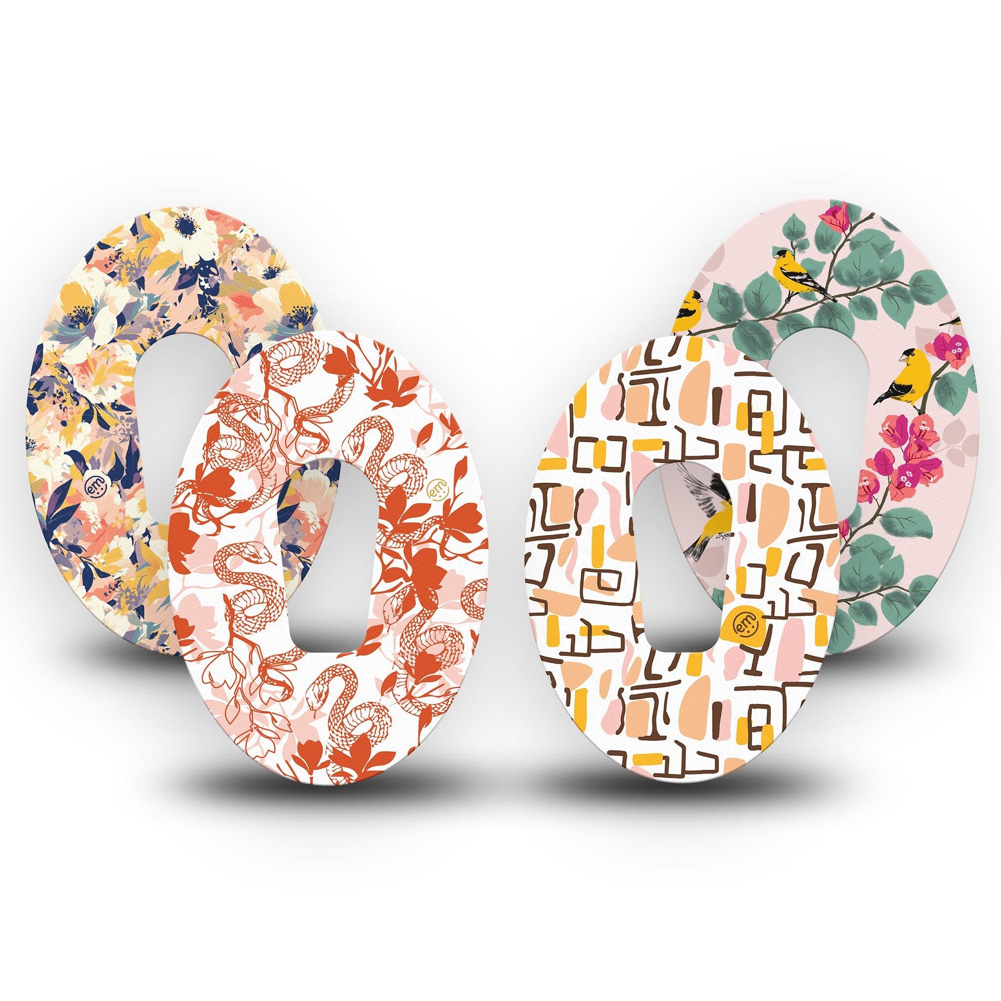 Vibrant and playful, Sunset Sorbet is a swirl of summer tones that bring a pop of color to your CGM site. Whether you're poolside or running errands, these CGM covers are made to brighten your day and stay secure through every plan. Pack contains one of each of our Squiggles, Tinted Blooms, Lava Coil Floral, and Yellow Finch designs.