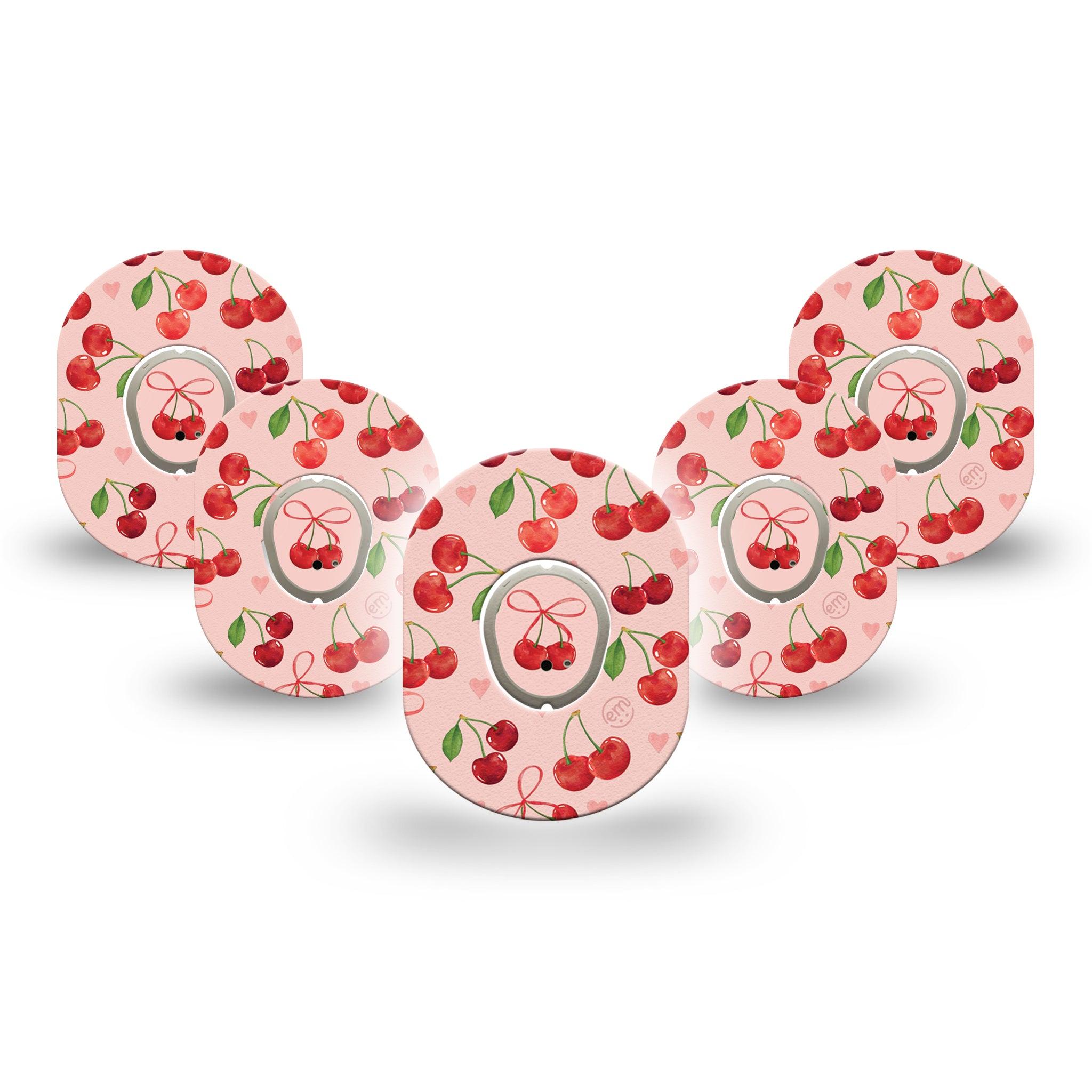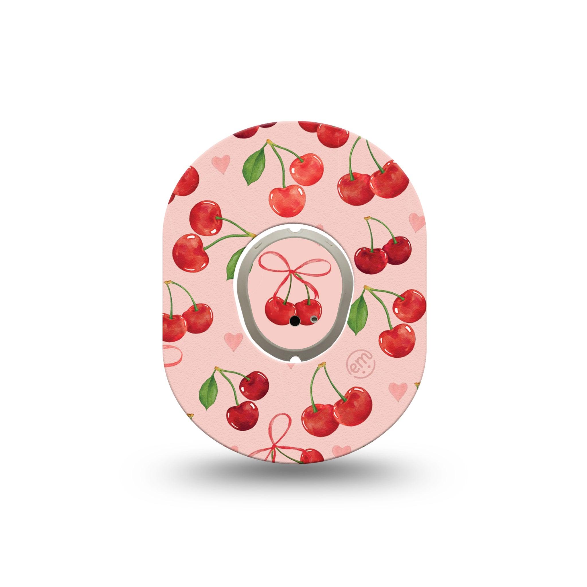 Juicy red cherries pop against blush pink for a fresh-picked summer vibe.