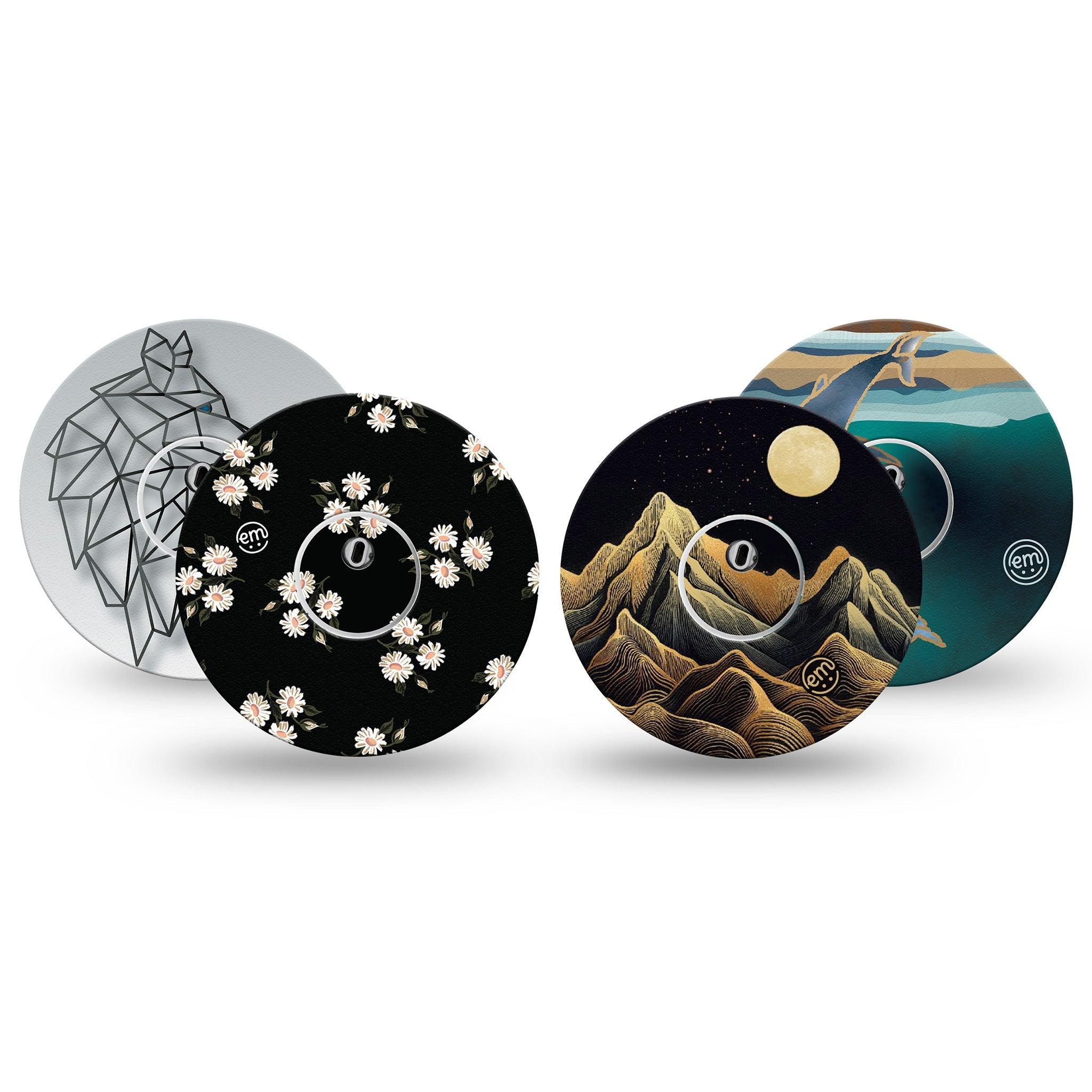 Whimsy in the wild—an ode to dreamy nature. Pack contains one of each of our Black Mountain, Black Daisies, Whales, and Iron Wolf designs.