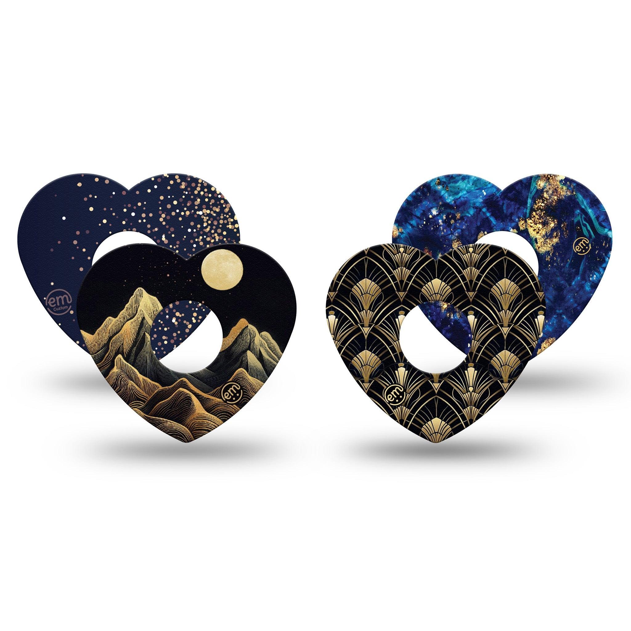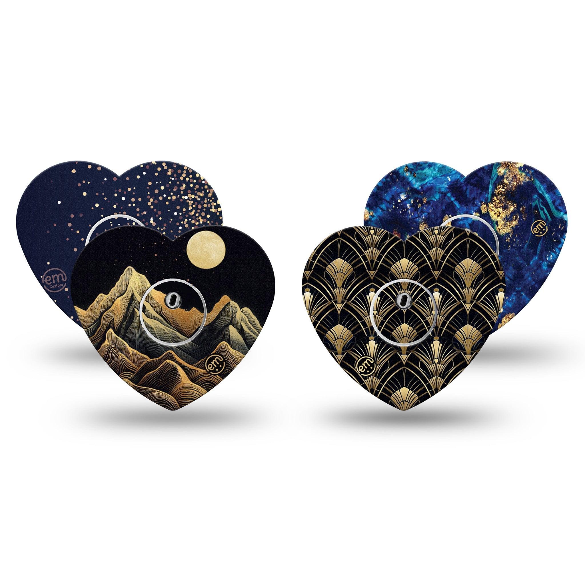 A striking mix of dark and golden tones that bring bold depth to your device wear. Pack contains one of each of our Black Mountain, Gold Sparkles, Molten Midnight and Midnight Deco design.