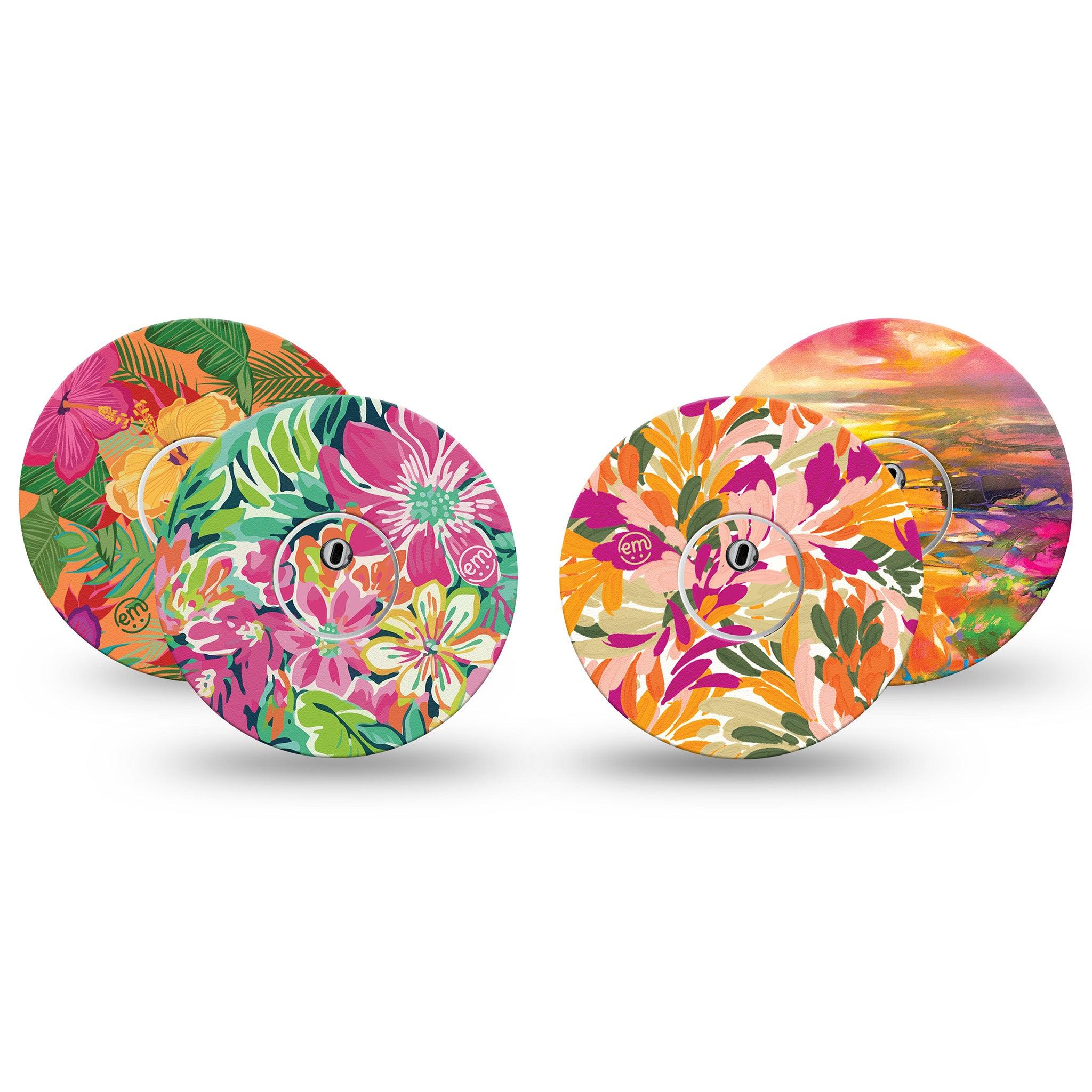 Escape to paradise with the Tangerine Tropics pack—vibrant orange hues and island vibes. Pack contains one of each of our Retro Brush Stroke, Tropic Burst, Fragments from Above, and Bright Hibiscus designs.