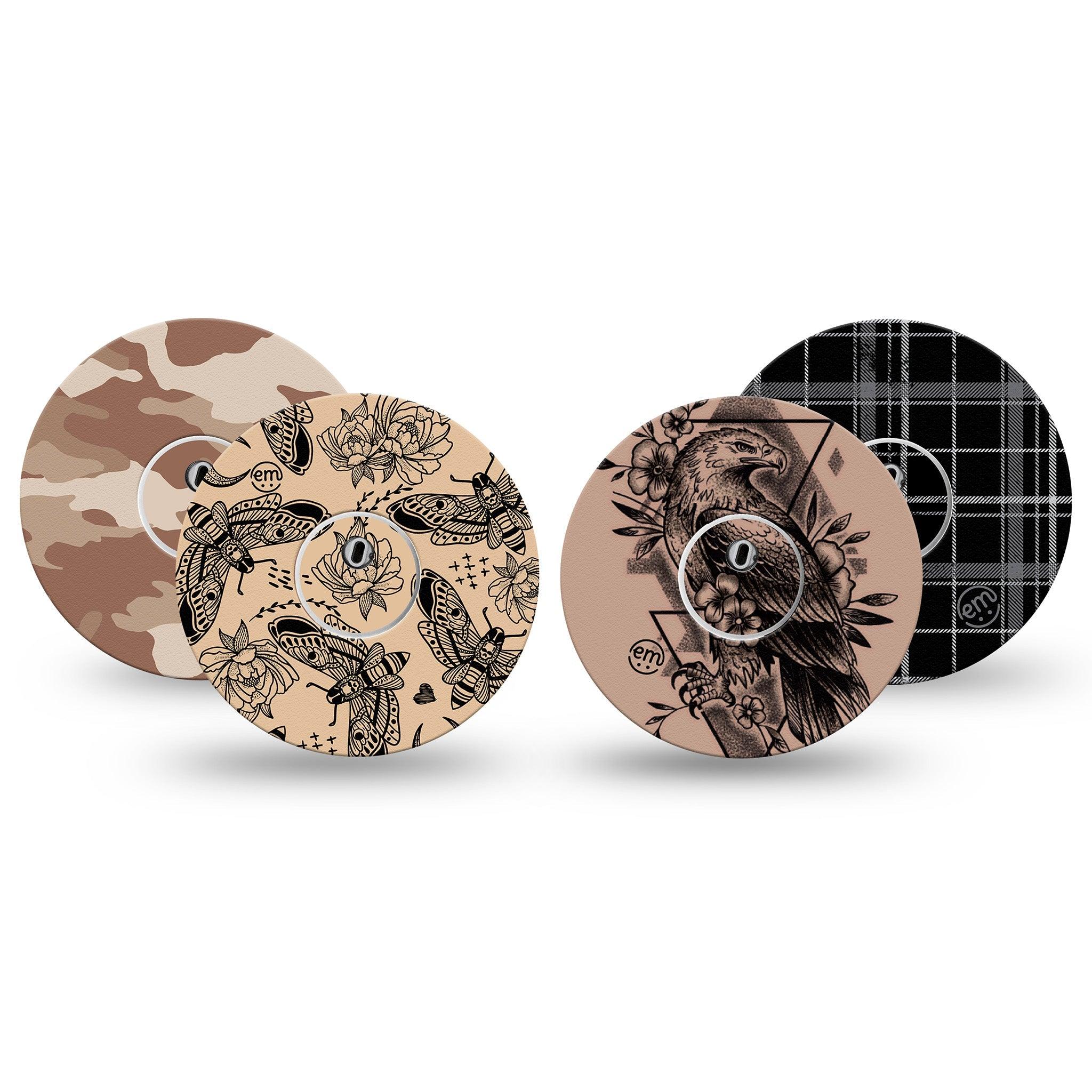 Sleek and understated, Black and Tan offers a rugged, no-fuss style. Pack contains one of each of our Hawk Tattoo, Tattoo Print, Desert Camo and Grunge Plaid design.