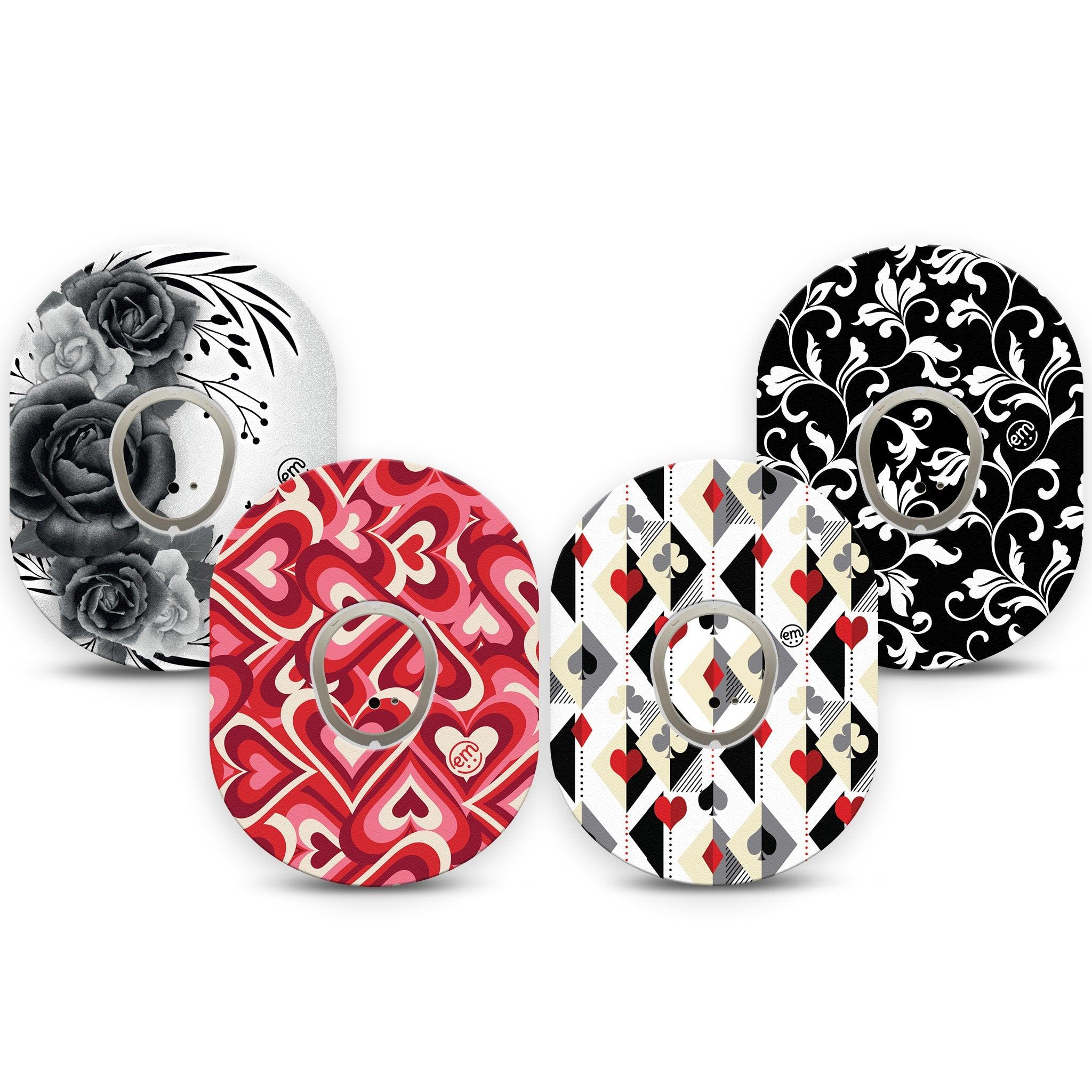 Shuffle up the fun with our playing cards-themed variety pack, perfect for every hand! Pack contains one of each of our Playing Cards, Valentines Hearts, Fleur de lis, and Tattoo Rose designs.