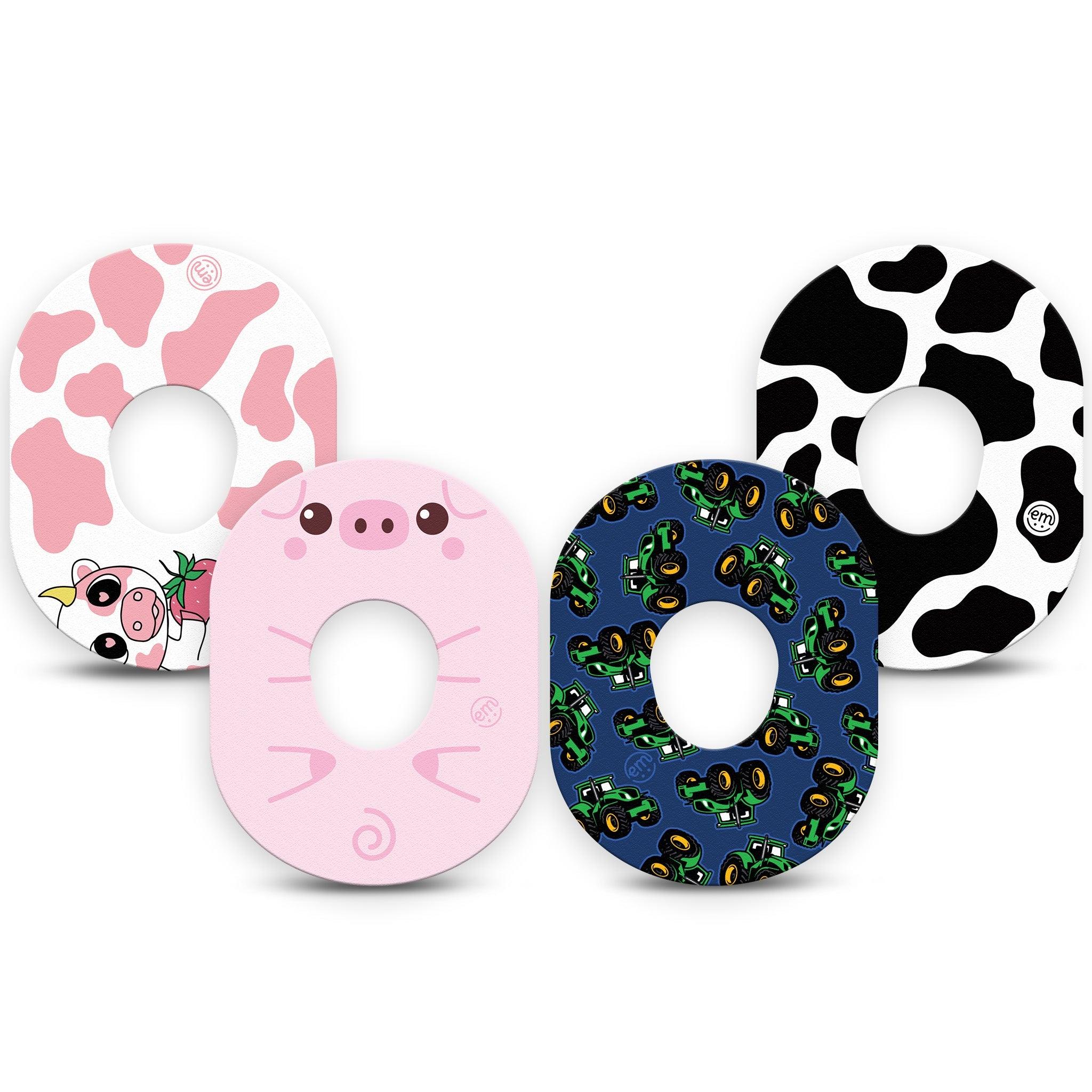 Oink, moo, vroom—this pack is filled with farmyard fun! Pack contains one of each of our Tractors, Cow Print, Strawberry Piglet, and Strawberry Cow designs.