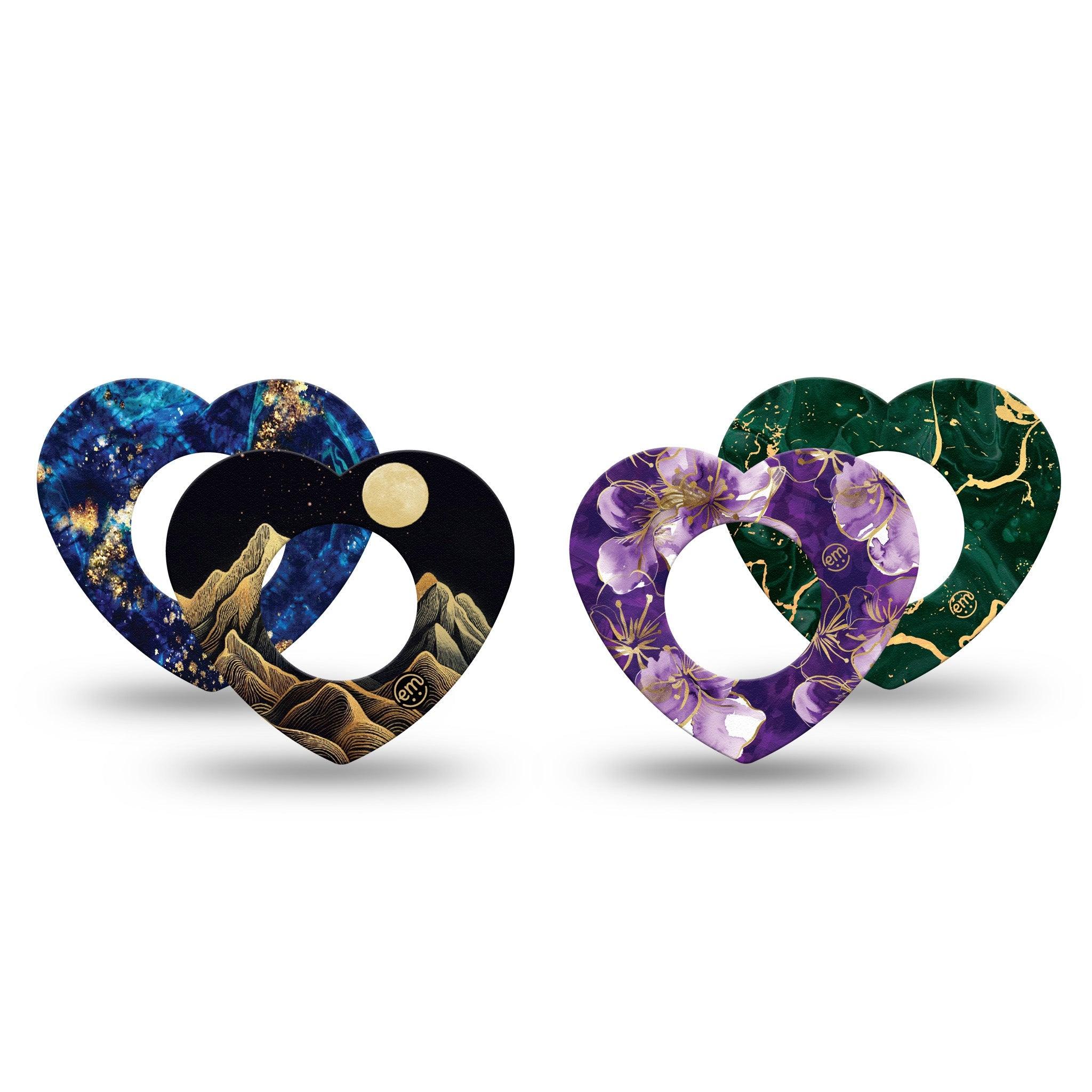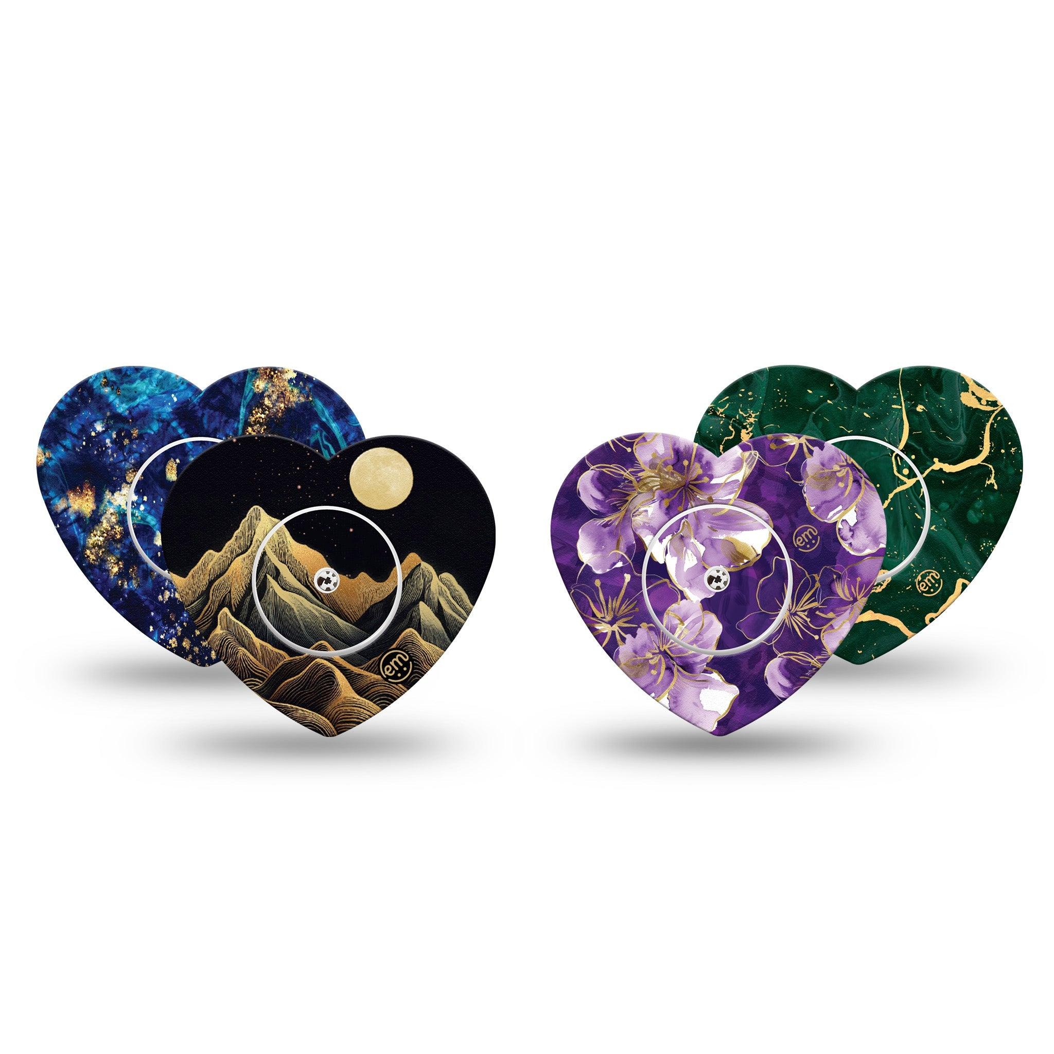 Dark tones paired with metallic accents create a striking contrast. This variety pack contains one of each of our Black Mountain, Green & Gold Marble, Molten Midnight, and Plum Gold designs.