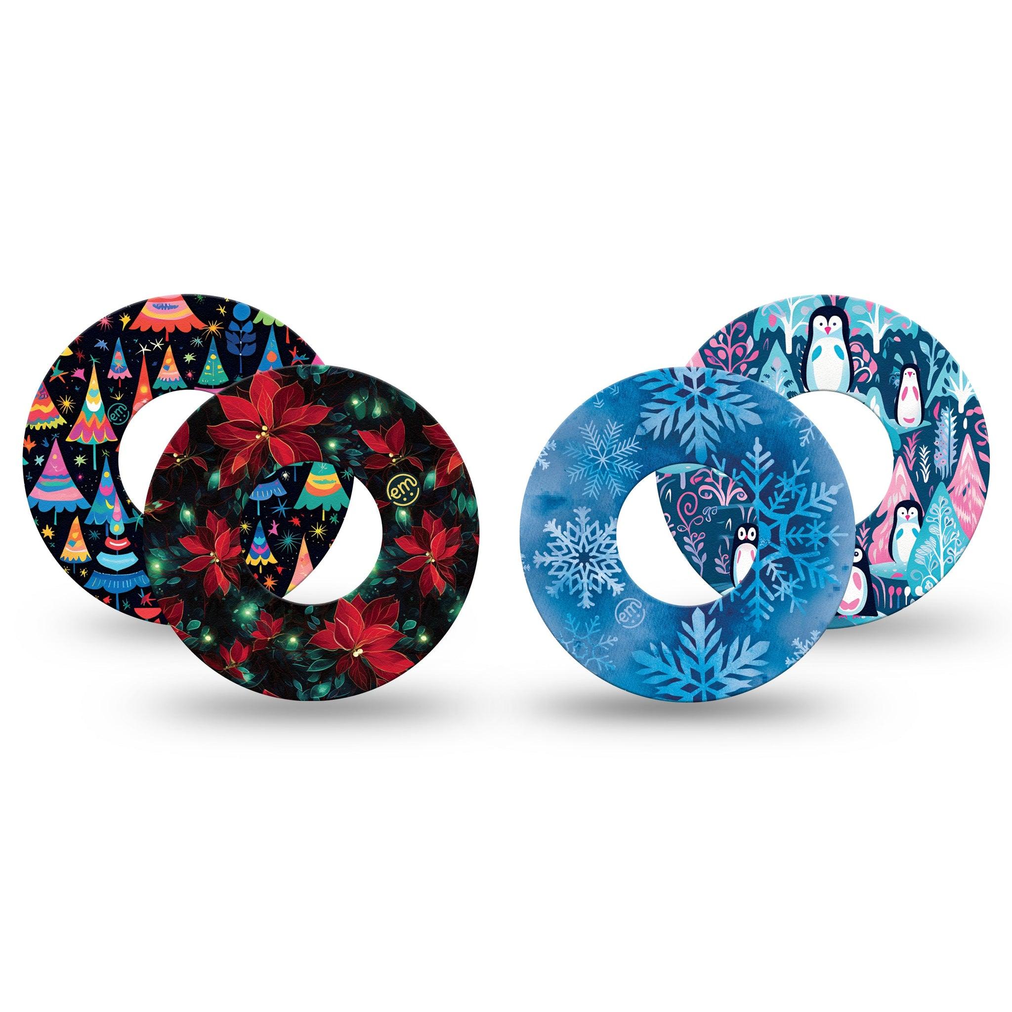 A cozy collection of holiday-ready CGM tapes featuring cool winter tones and cheerful seasonal motifs, made to pair perfectly with festive moments big and small. Pack Includes One of Each Design: Falling Snow, Christmas Floral, Penguins, Christmas Trees