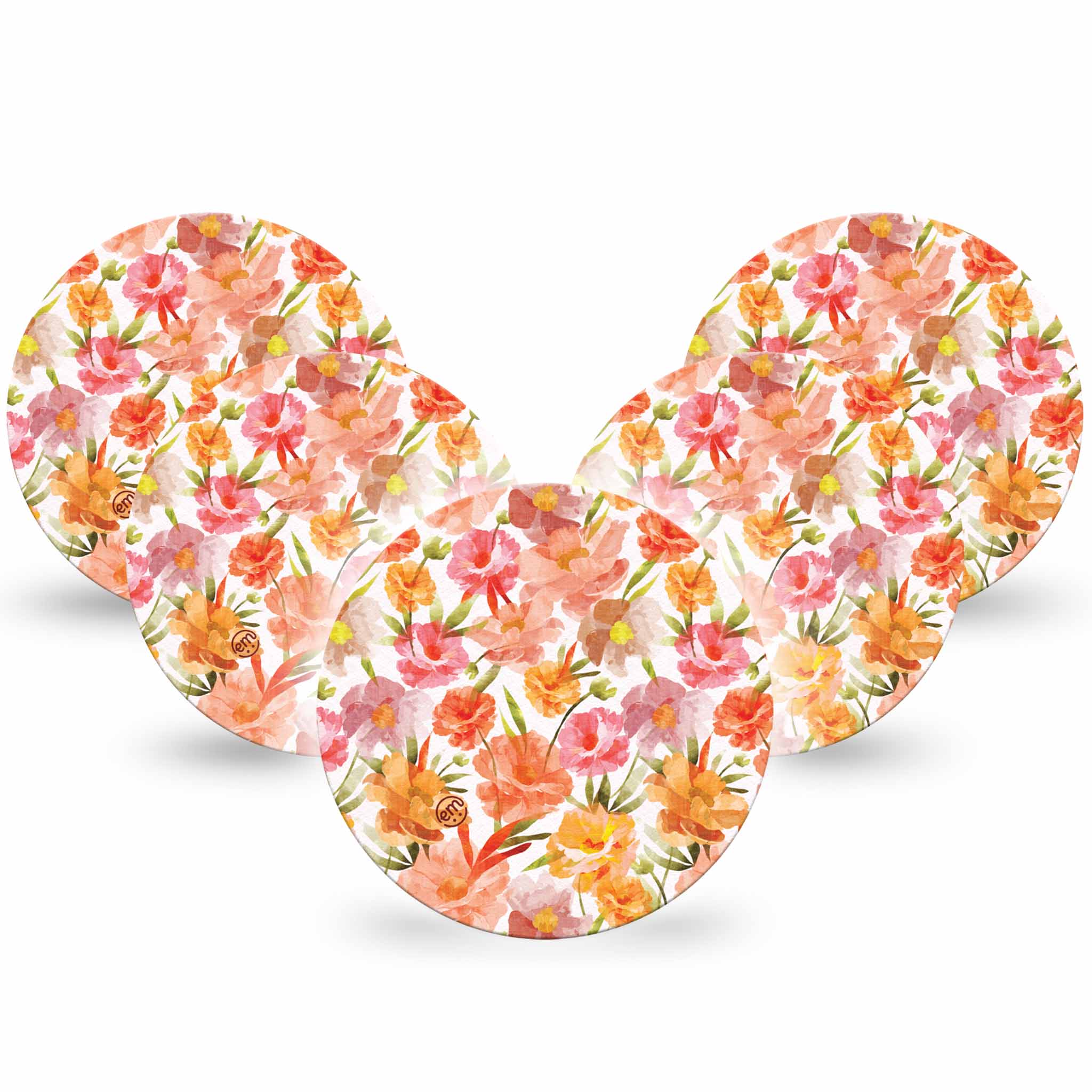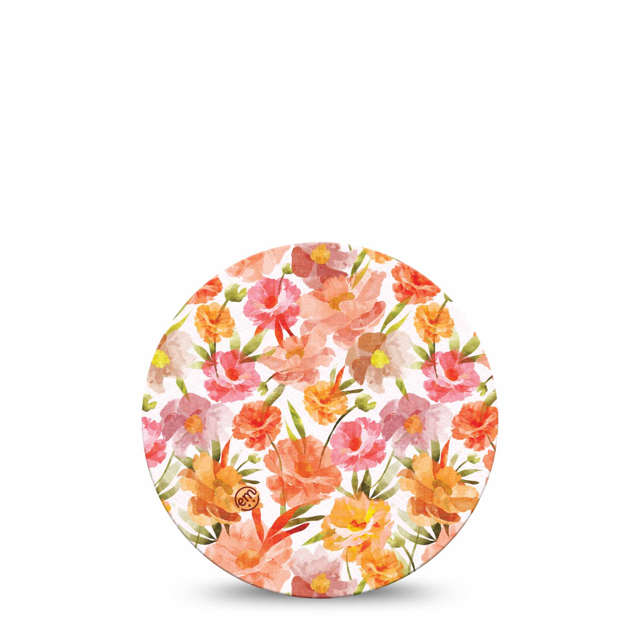 Soft petals in sunset tones drift across white for a look that’s both dreamy and grounded.